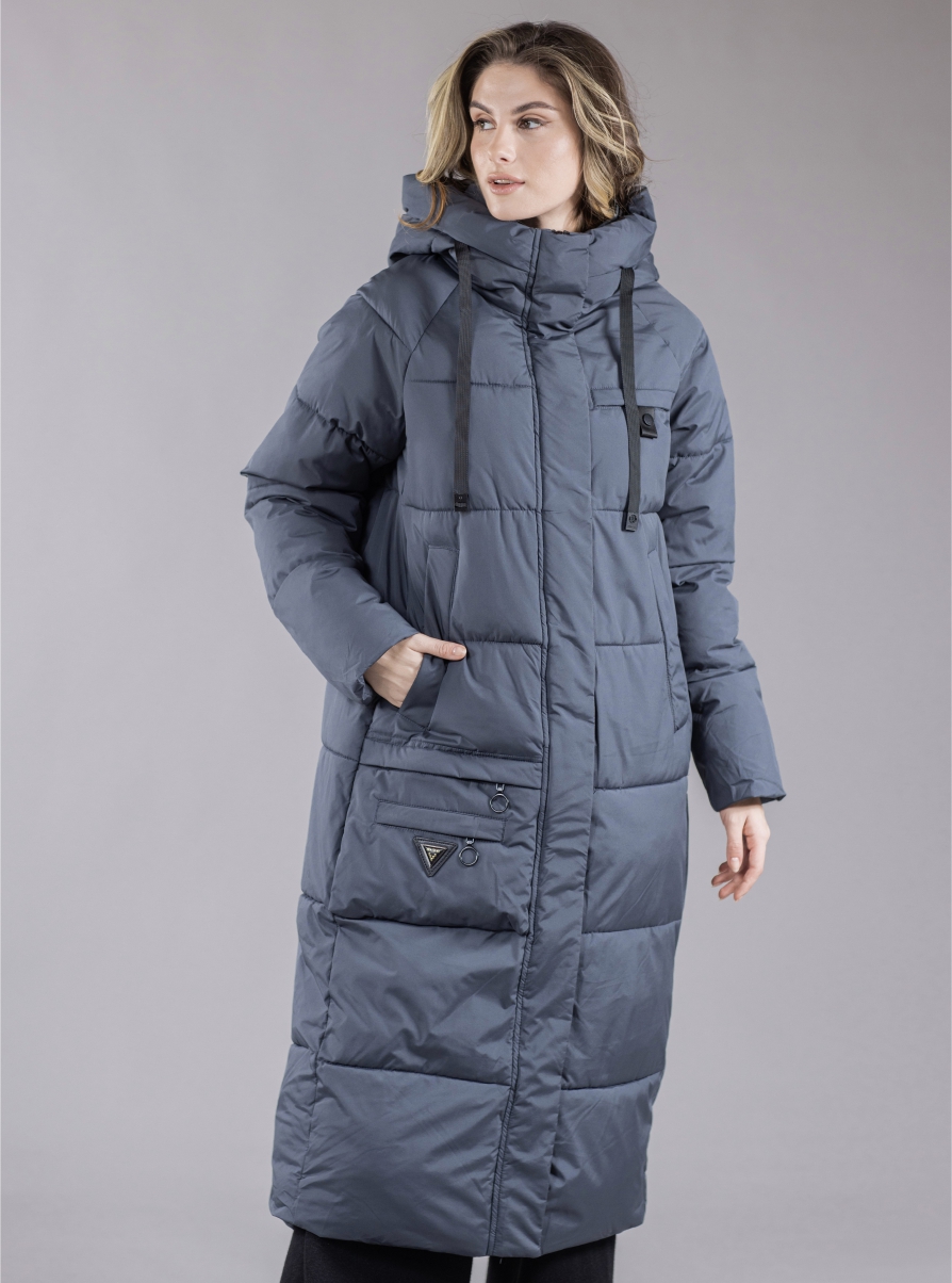 Модный «пуховик-одеяло» с капюшоном в стильном стальном цвете для ценителей разумной экономии. Модель «Мадрид» дарит бескомпромиссную защиту от капризов снежной, ветреной или сырой зимы, слякотного межсезонья. Пальто длиной 115 см и объемный капюшон укрывают, словно теплое одеяло. Сочетание полиэстера и биопуха надежно защищает от сильного ветра, сырости и осадков, не требует особого ухода, долго носится. Необычность модели придают ассиметричные накладные и прорезные карманы с фурнитурой в цвет изделия. Пальто удобно для долгих зимних прогулок в городе и на природе. Пуховик «Мадрид» не даст ни одного шанса зимней непогоде помешать вашему активному дню!Характеристики