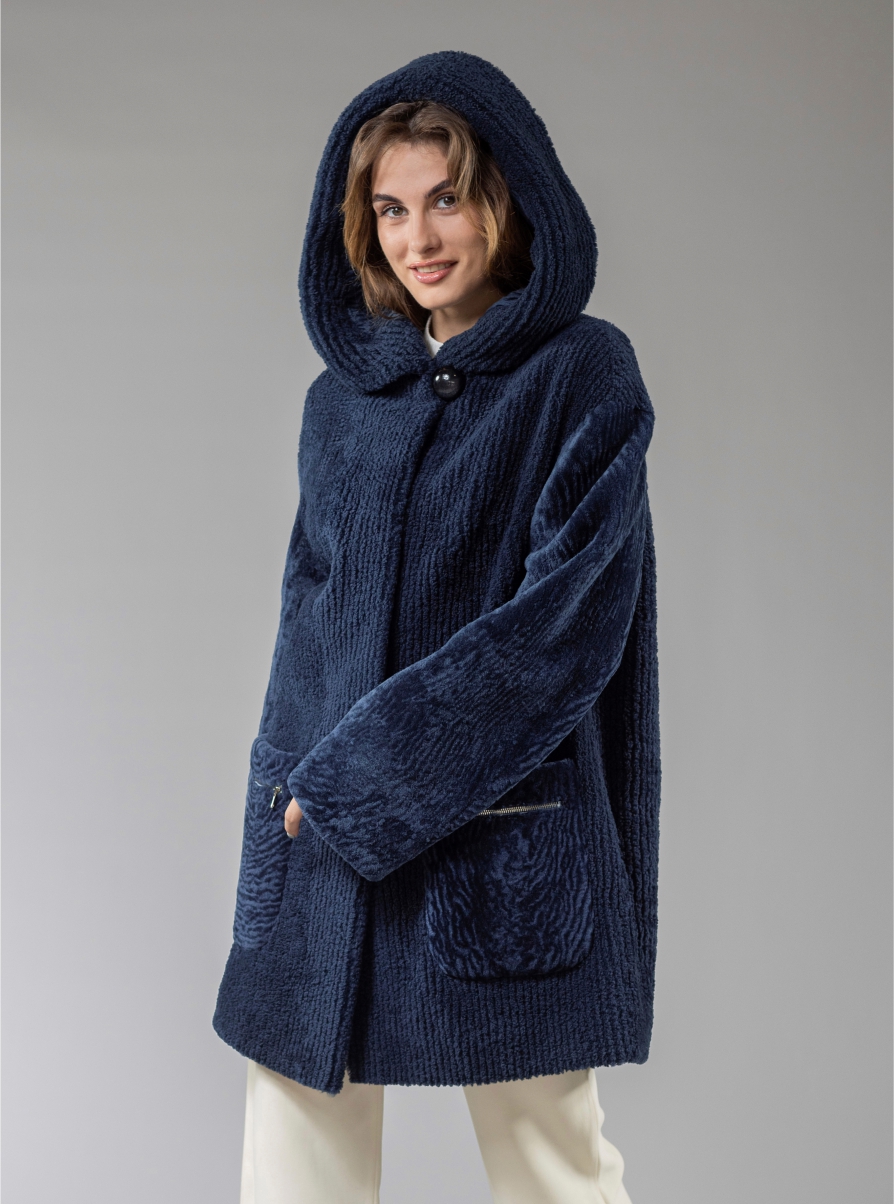 Полупальто с капюшоном из овчины с эффектом керли, классическая модель в современном звучании. Полуприлегающий А-образный силуэт, плоский завиток керли, крой цельными пластинами — все это элементы классики зимнего гардероба. Пикантные нотки придает изделию выраженный ребристый рисунок, полученный путем особой обработки овчины. Фактурные ребристые вставки отчетливо выделяются на передней и задней части изделия, в отделке капюшона. Еще один необычный акцент — застежки-молнии на накладных карманах. Глубокий цвет «графит» подчеркивает красивый узор плоских завитков керли. Вы можете не заботиться ни о головном уборе, ни о дополнительных украшениях — шуба «Рената» объединила в себе все, что нужно в промозглое межсезонье или европейской зимой.Характеристики