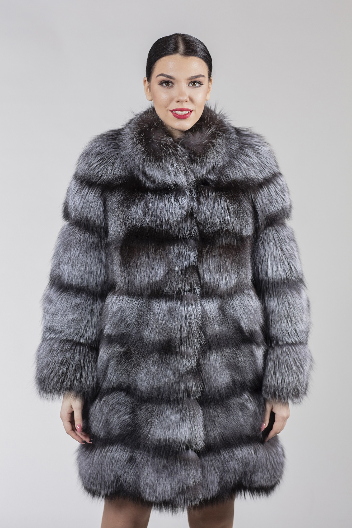 Неповторимое полупальто из меха серебристо-чёрной лисицы с воротником в натуральном серебристо-черном цвете. Помимо эстетической притягательности пушистого меха, непревзойдённых тепловых качеств, эта шуба обладает ещё одним несомненным плюсом - является модным трансформером, с отстегивающимися рукавами и нижней частью. Вы будете неповторимы, превращая изделие то в укороченную модель, то, оставляя длину, обыгрывать рукава удлиненными кожаными перчатками.Характеристики
