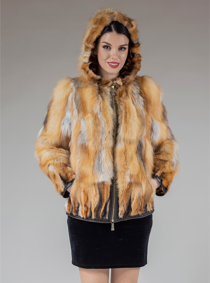 Куртка из рыжей лисицы с капюшоном «Жанна-К» — ваша возможность быть яркой и оставаться в тепле без лишних расходов. Новинка особенно порадует автоледи и всех, кто живет в активном городском ритме. В куртке «Жанна-К» будет комфортно в прохладное ветреное межсезонье и «европейской» зимой. Тщательно подобранный по форме и цвету лоскут меха рыжей лисицы создает эффект единого полотна, мех смотрится очень естественно. Манжеты и область застежки-молнии отделаны кожей, это выглядит стильно и препятствует истиранию даже при длительной носке. Объемный капюшон надежно защищает от ветра и осадков, а также решает проблему выбора головного убора. Демократичная цена и размерный ряд 42-48 делает куртку «Жанна-К» желанной покупкой для модниц, стремящихся к оригинальности и новым дерзким образам. Отличаться и удивлять — легко в куртке «Жанна-К»!Характеристики